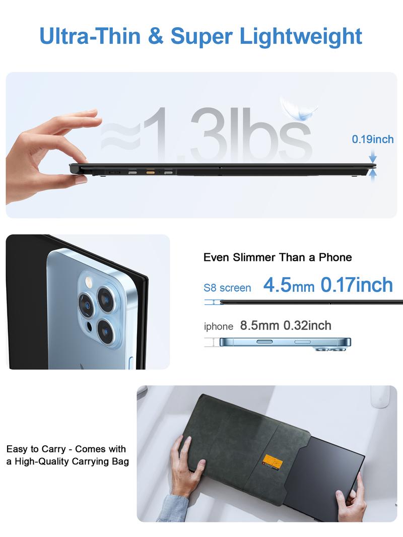 • The upgraded ultra-slim laptop screen extender is just 6.5mm thick, thinner than most smartphones.