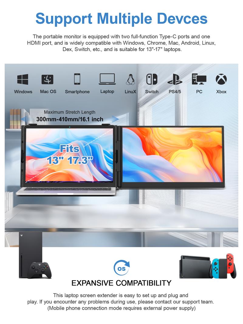 • Compatible with laptops 13-17 inches, Windows, Chrome, Mac, Android, Linux, Dex, and Switch.