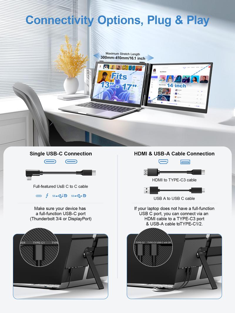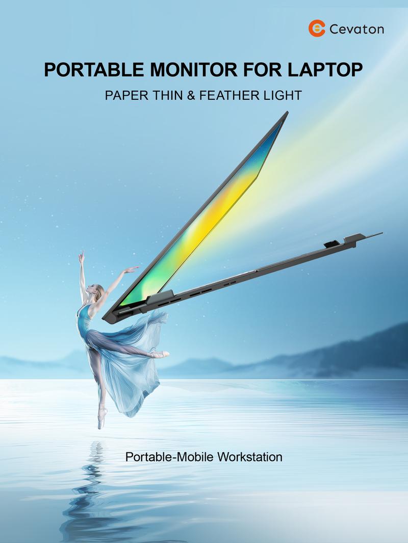 【Black Friday & Cyber Monday】Cevaton Ultra-Slim Laptop Screen Extender(Not a Computer), 14" FHD 1080P Portable Monitor for Laptop, 1.3Lbs Lightweight Dual Monitor Extender Plug & Play for 13"-17" Laptops, Compatible with Wins/Mac/Android/Chrome