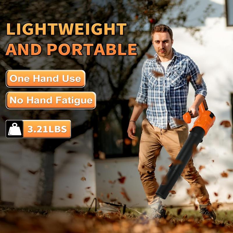 TOOLIFE cordless leaf blower is equipped with a 21V 4.0Ah battery and a fast charger, allowing 35 minutes of continuous operation on high speed and one hour of continuous operation on low speed! The fast charger can fully charge the battery in just one hour. It's also equipped with a battery indicator, allowing you to take care of your garden, backyard, etc. more efficiently!